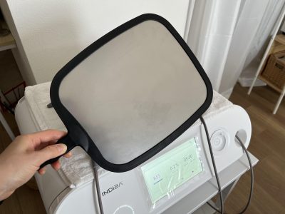 インディバの施術をする時、背中や太ももに「戻し電極」という板を素肌に密着させます。